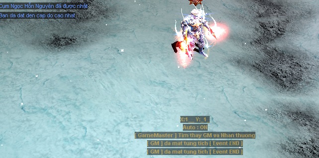 - Khi thời gian có Sự Kiện, sẽ có thông báo tại màn hình Game. Tọa độ của GM sẽ xuất hiện ngẫu nhiên trong khu vực Devias, và có gợi ý tọa độ là : X = x1x, Y = 1xx ( 15s sẽ gợi ý thêm 1 lần, vị trí thứ tự tọa độ sẽ dần dần được hé mở ) ^^